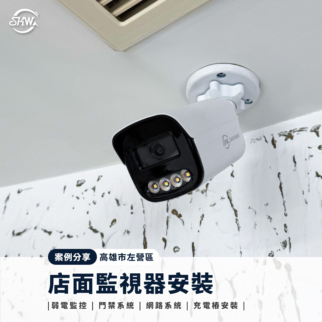- 高雄左營區店面監視器安裝|IP Cam 500萬畫素,門口+室內完整監控規劃